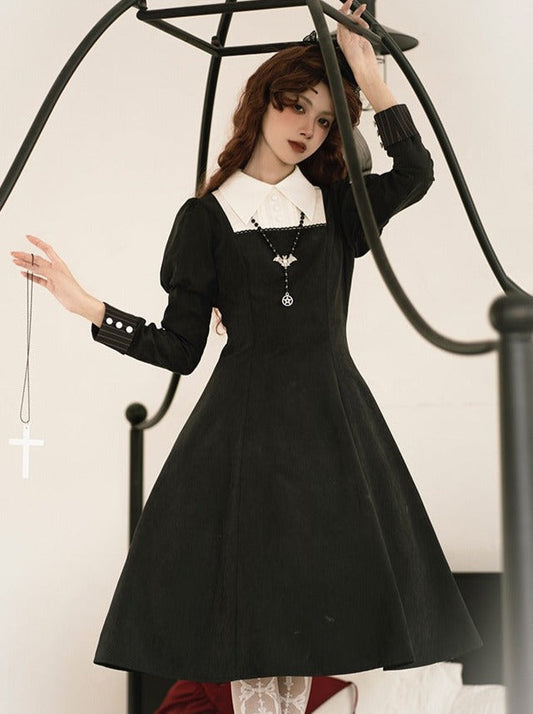 + High Long Dress Gothic Shiro Waist Lolita Collar Sleeves White