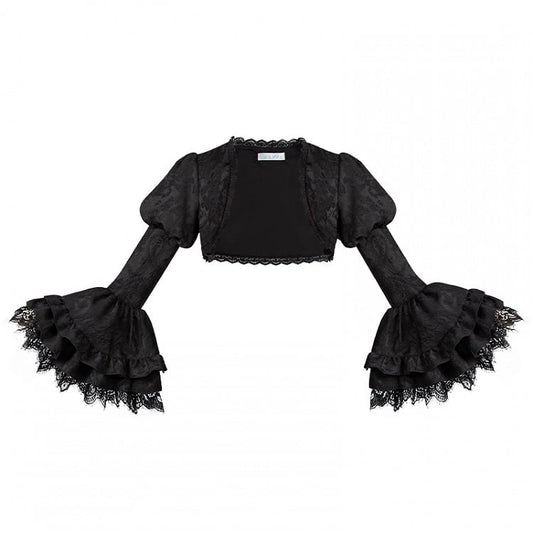 Black Gothic Lolita Layered Ruffle Bell Cuffs Long Sleeves Bolero