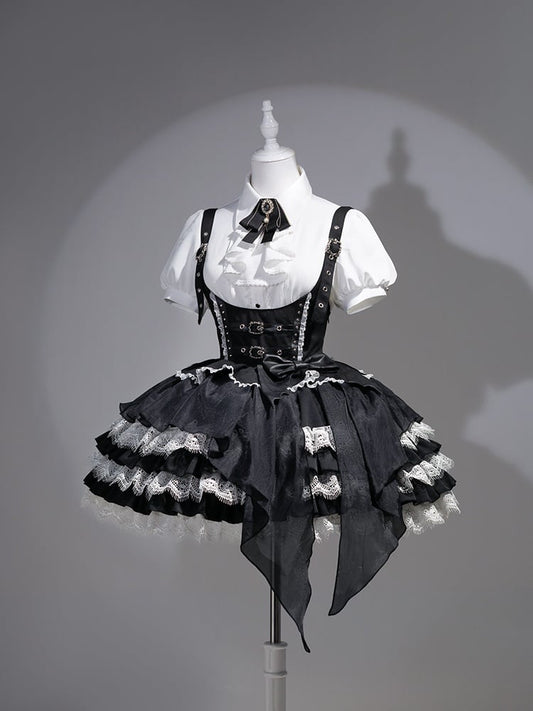 Tiered Devil Overalls Wing Skirt Black Buckle Straps Gothic Lolita Dress Accent