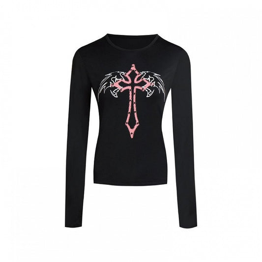 Gothic Cross and Wing Black Punk Cropped Top