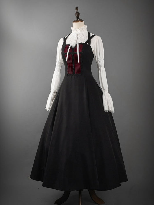 Red Pleated Bodice Black Gothic Lolita Jumper Skirt