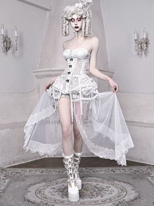 Straps Fishbone Dark Gothic White Corset Bustier Sleeping Alice