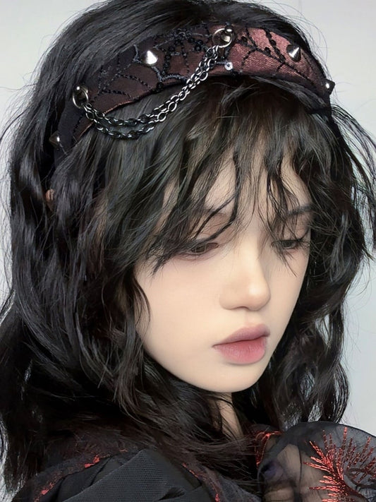 KC Chain Web Gothic Red Rivet Spider Detail Metal