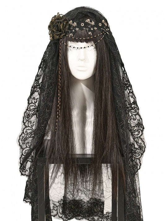 Bead Black With Veil Gothic Chains Lace Gold Floral