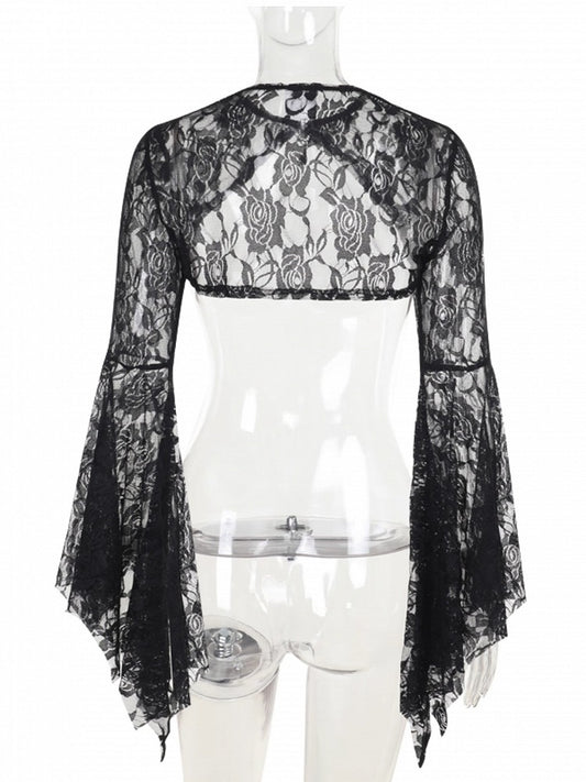 Gothic Trim Sleeve Detail Bell Black Shrug Chain Gem Halloween Lace with