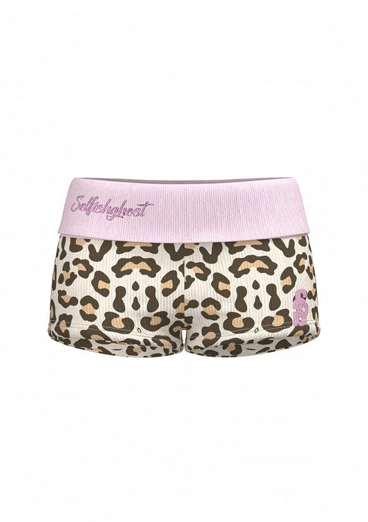 Fashion Leopard Elastic Waist Embroidered Gyaru Glamorous Shorts