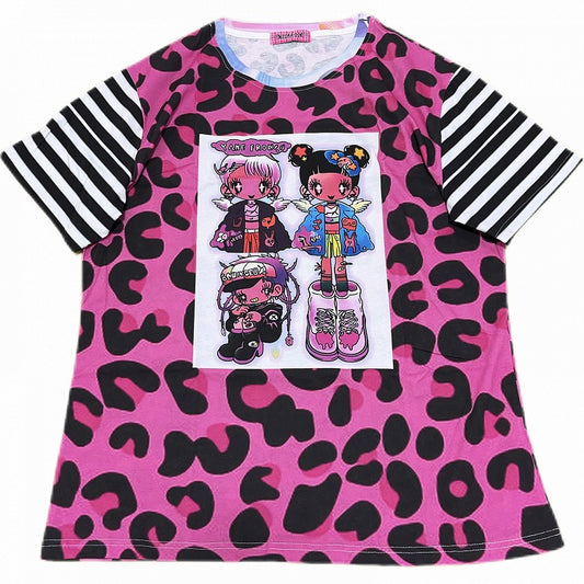 and Pattern Leopard Pink Black T-shirt Y2K Cartoon