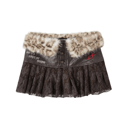 Hem Fashion Mini Plush Leopard Waistline Millard Gyaru Lace Patches Coffee Glamorous Skirt