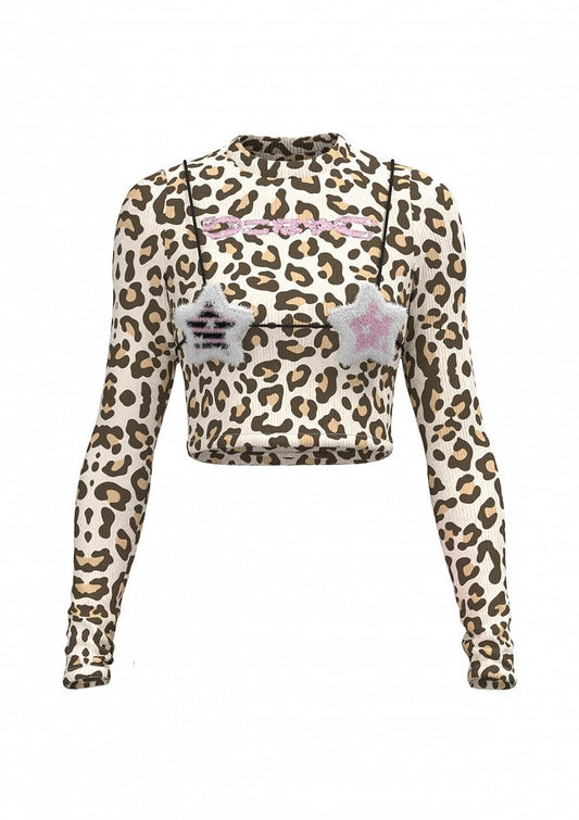Top Glamorous Cropped Fashion Leopard Gyaru Slim-fitting Pattern