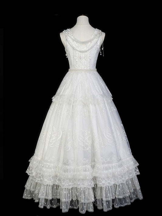 Lily Sweet of Lace Gloves Valley Embroidered Lolita Full Set Choker Veil + KC Head Dress White the