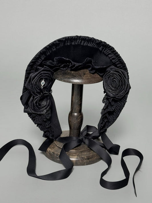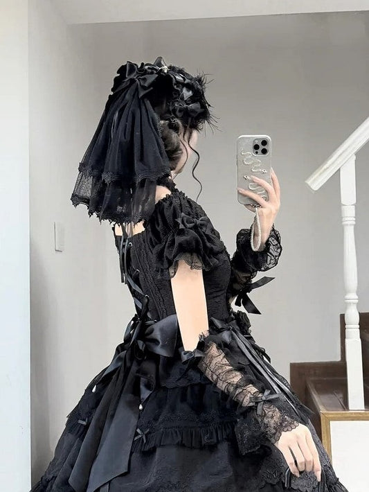 Bead with Mini Hat and Lolita Black Gothic Lace Details