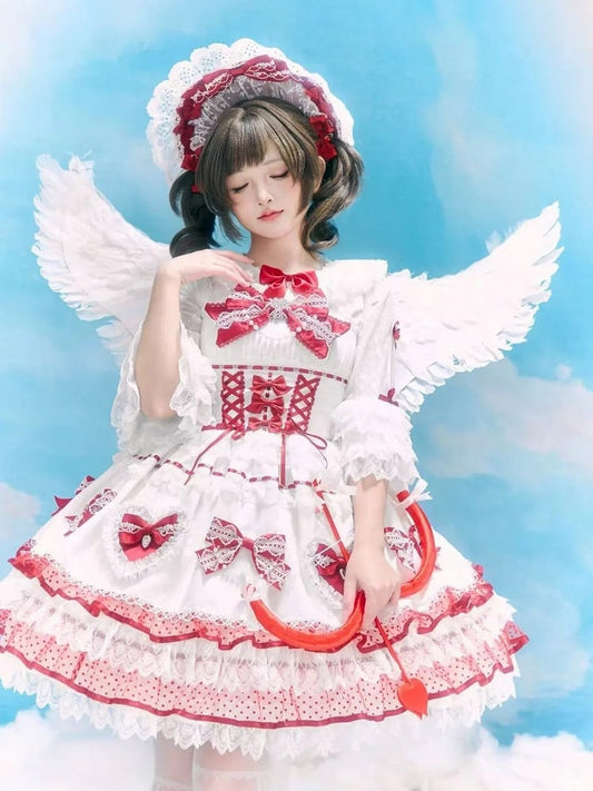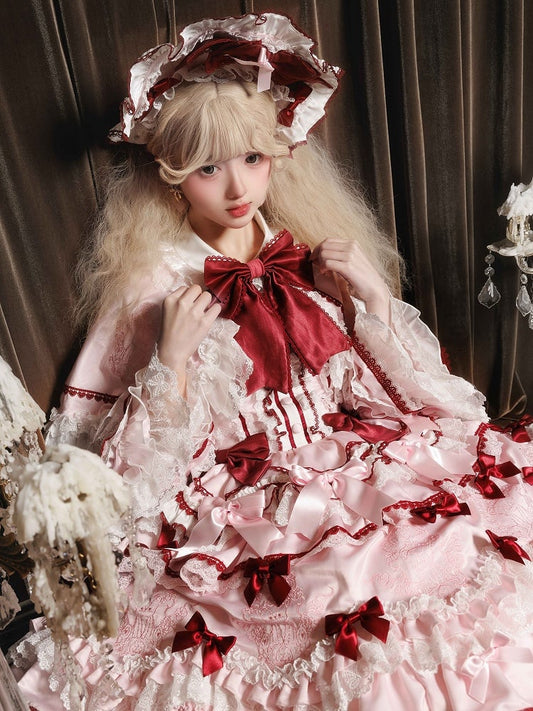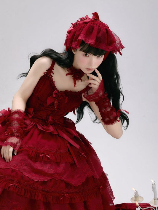 with Red Lace and Wine Lolita Accents Sweet Trim Bonnet Bow
