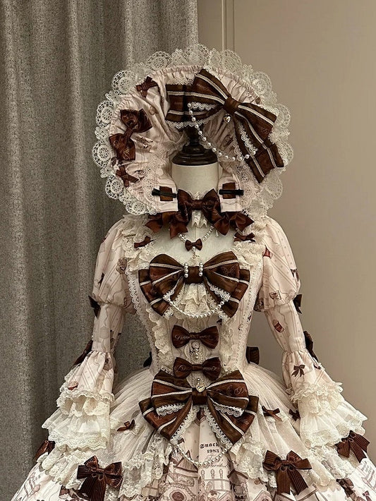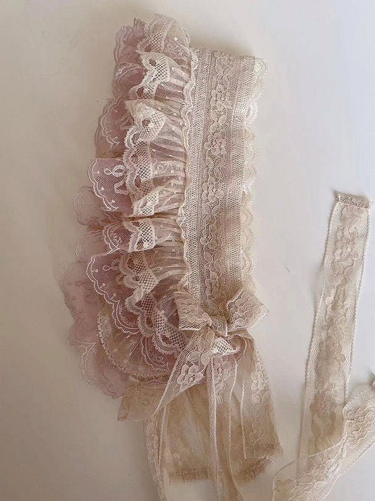 Sweet Bonnet Lace-Trimmed Bead Accents Bows Brown and with Lolita