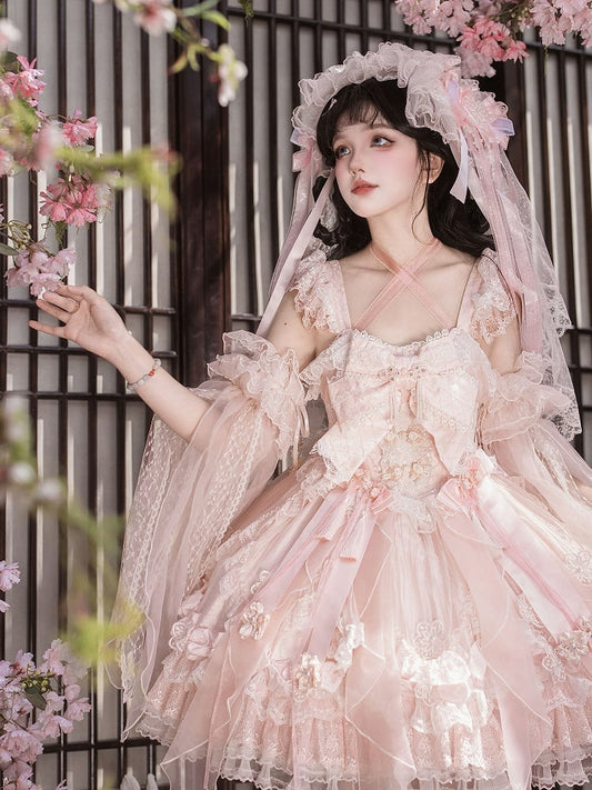 Sleeves Veil Hairband Pink / Hairclip Chinoiserie Lolita