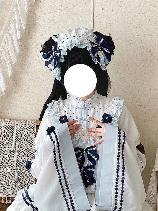 with Tassel Bow Blue Hairclips Lolita White Dark Accents