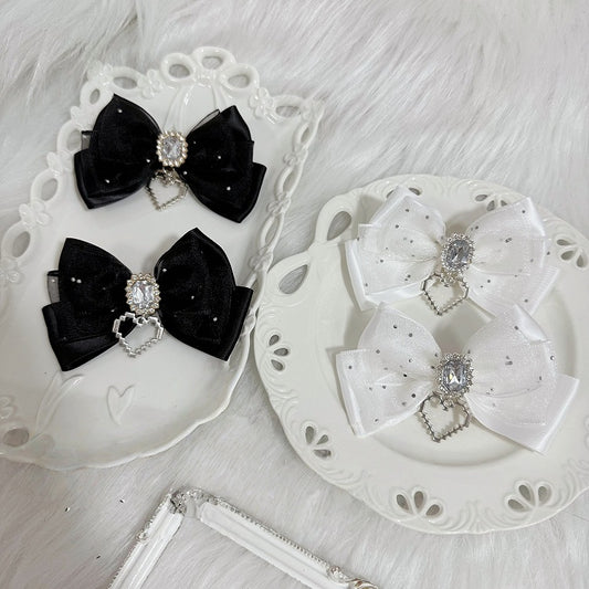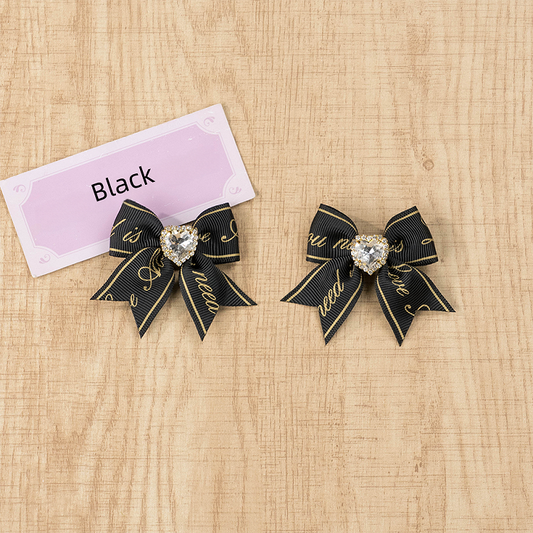 Letter Kei Rhinestone Bow Hairclips Jirai Black/Pink/White