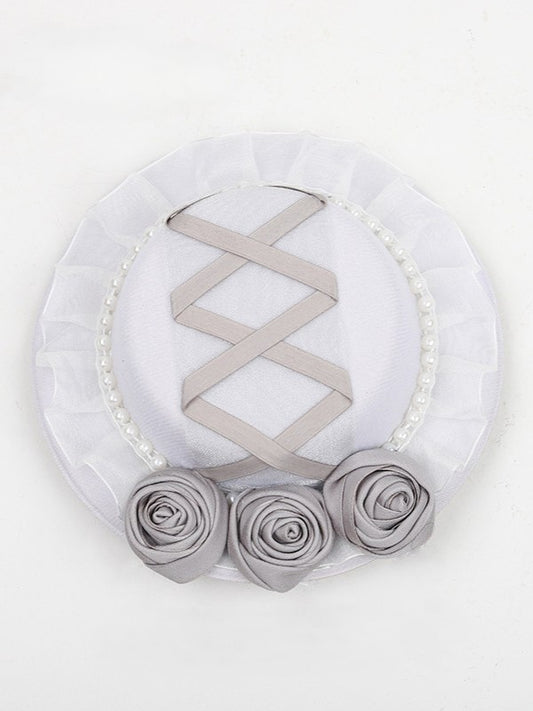 Hat Mini Pearl Rose Crisscross With Clips Gray