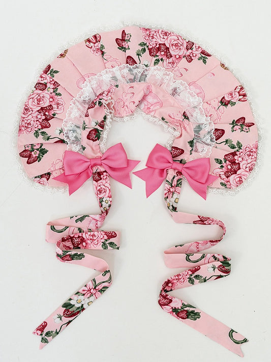 Bear Print Floral Pink/White Bonnet Pink and Sweet Teddy Lolita