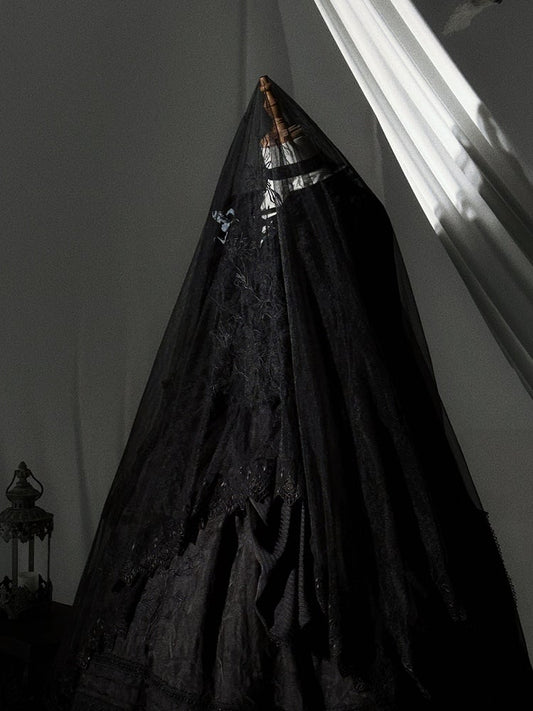 Lolita Lace Floral Embroidered Trim Black/Gray/Brown Veil with