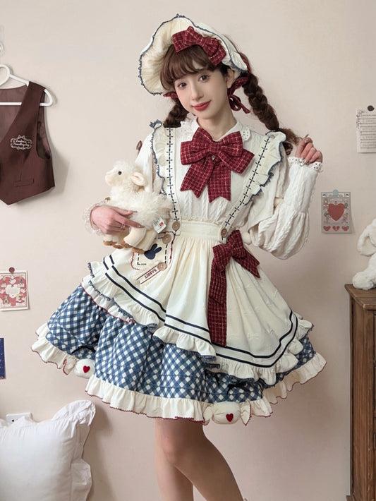 Jirai Kei Beaded Sweetheart Rhinestone Adorned Plaid Bowknot Hairclips