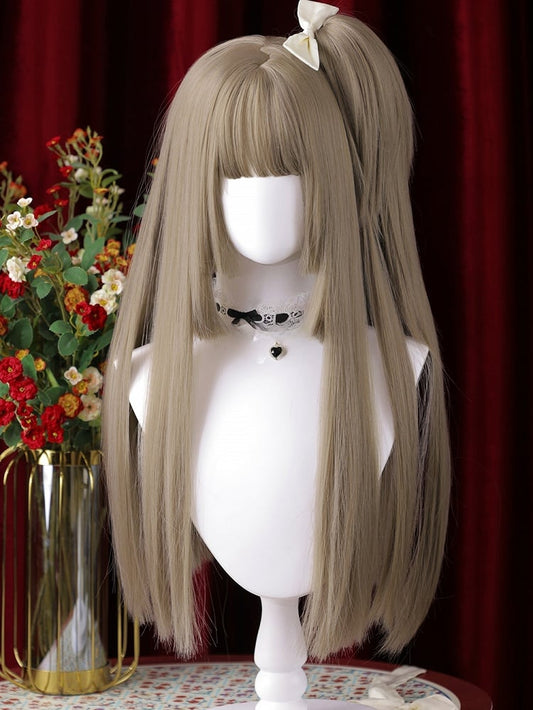 Light Brown Hime Cut Long Straight Synthetic Wig