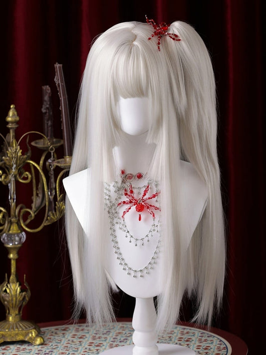 Blonde Hime Cut Long Straight Synthetic Wig with Double Claw Clips