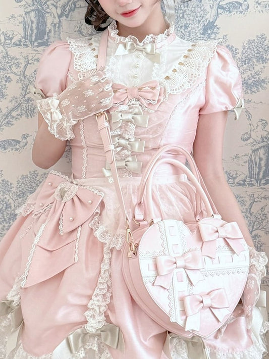 Lolita-style Cross Linear Details Bowknot with and Hand Design Abstract Red Bag Heart-shaped