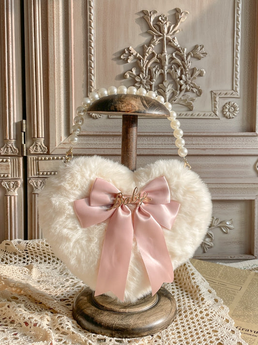 Bowknot Bag Heart-Shaped Bead – Plush with Hand Handle Options and Color Lolita 11