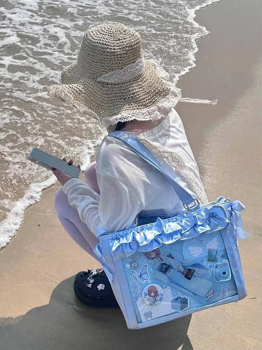 Transparent And Blue Bow Decoration 2-Way With Bag Ita Window