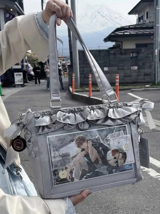 Trim Ita Bag Silver Ribbon Bow Large Capacity Tote Ruffled
