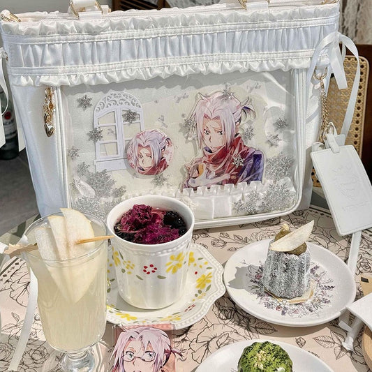 Badge Charm with Star-shaped Ita Bag White Set PU Detachable
