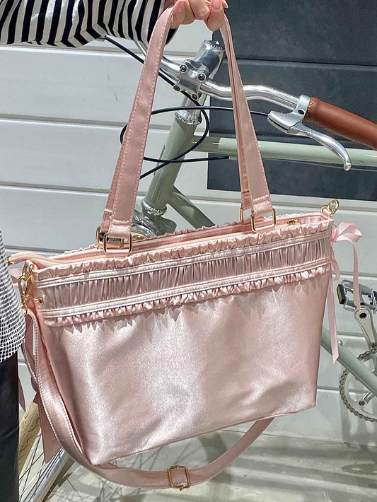 Ita Bag Ruffled Pink Ribbon Bow Large Trim Capacity Tote
