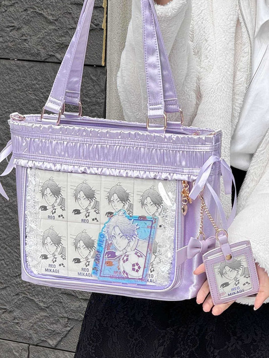 Ita Bag Ruffled Ribbon Bow Large Capacity Tote Purple Trim