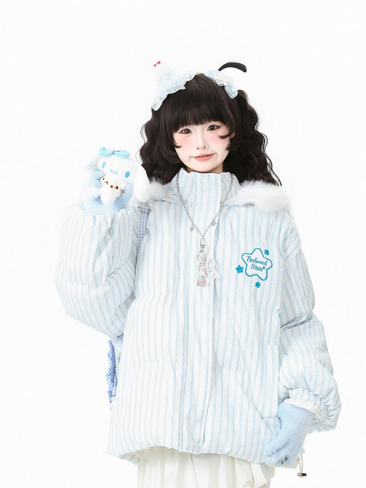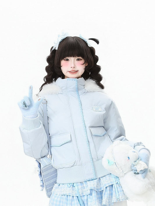 in Embroidery Winter Daily Kawaii Pink/Blue Jacket with Star