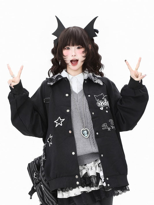 and Blouson Kawaii Daily Jacket White - Bear Patterns Star