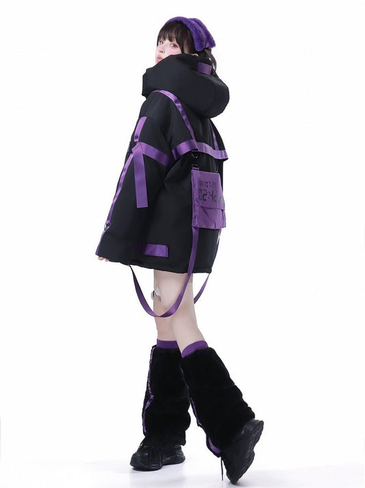 Jacket Purple Cyberpunk - Puffer with Tactical Jirai Straps Black Base Kei