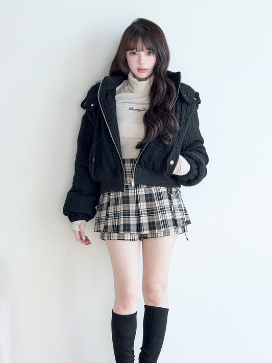 Kei Hooded Cropped with Strap Black Jirai Jacket Details Zippered