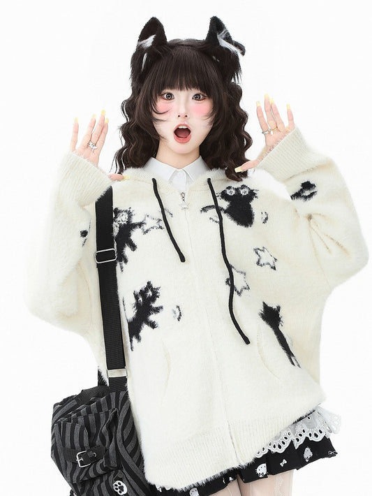 Kitten-Themed Hoodie Patches Jacket Bittersweet - Cross