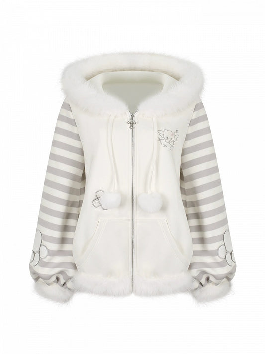 Pattern Black/White Hoodie with Jacket Kawaii Stripe