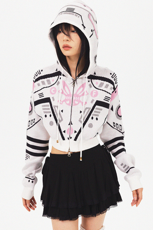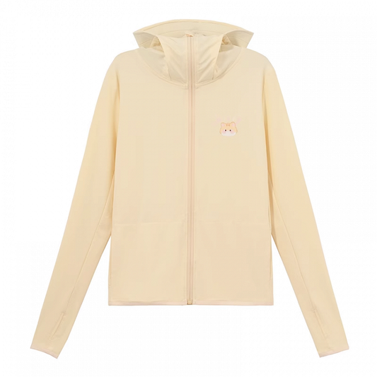 Sun Print White Jacket Kei Hooded Cat Jirai Protection