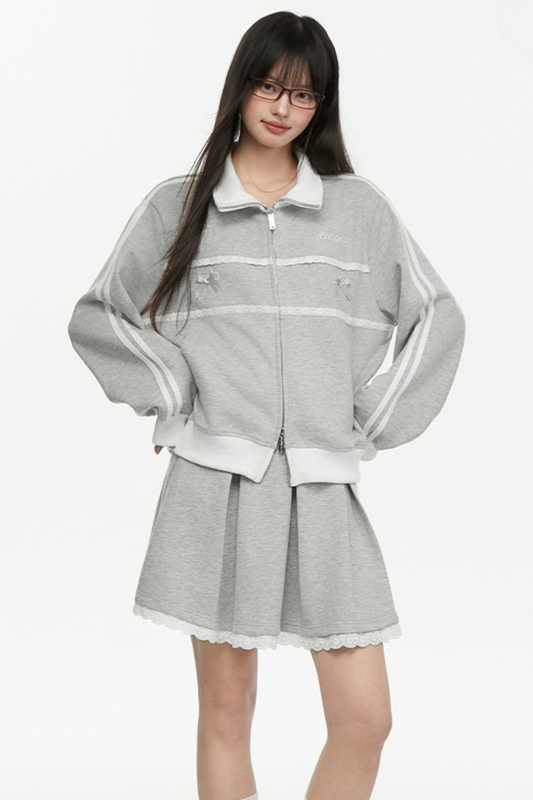 Sailor Zip WhiteBlack Collar Jacket Jirai Sweatshrit Closure Kei