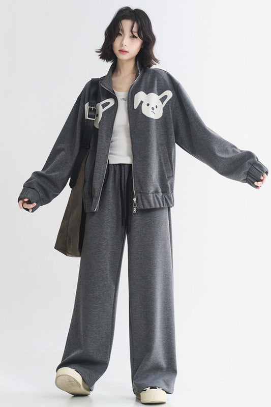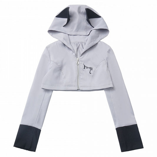 Wolf Ears Gray Zip Hood Closure Design Cropped Jacket