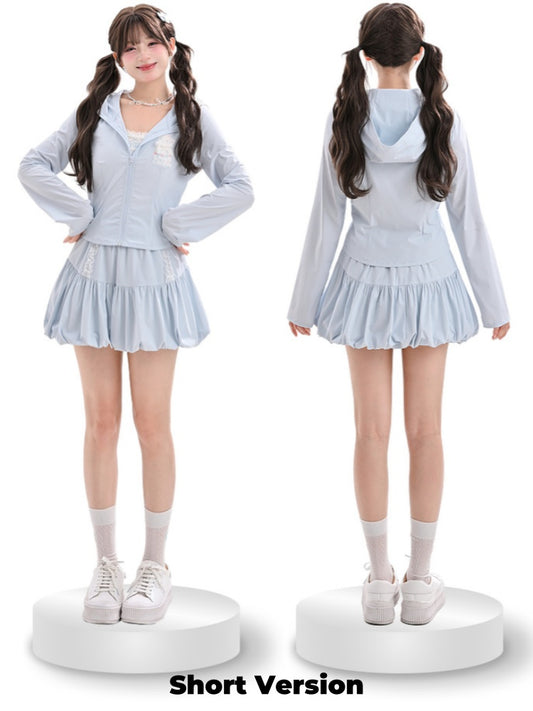 Short/Long Jacket Light Blue Lamb Print Sun Protection Hooded Version