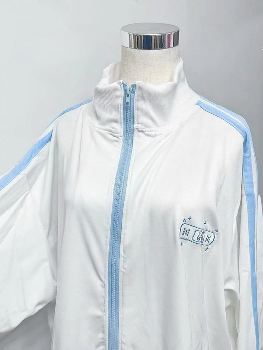 WhiteBlue Sweatshrit Jirai Collar Kei Zip Sailor Closure Jacket