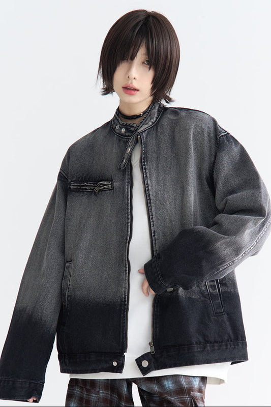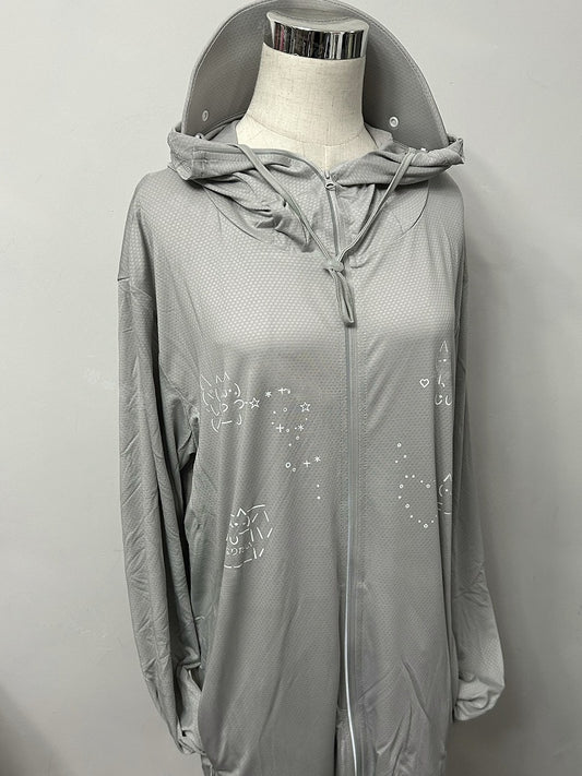 Jirai Print Protection Sun Hooded Cat Kei Jacket Gray