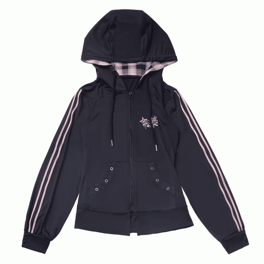 Pink Plaid Hood Black Star Embroidery Sun Protection Jacket