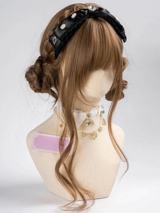 Jirai Kei Rhinestones and Beads Adorned Lace Trim Bowknot KC