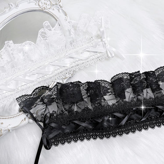 Black/White Jirai Kei Criss-cross Ribbon Bowknot Lace Trim Hairband