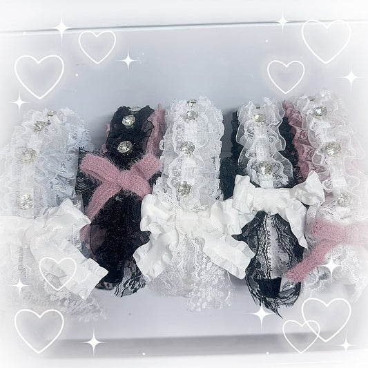 Jirai Kei Rhinestone and Bow Accents Lace KC