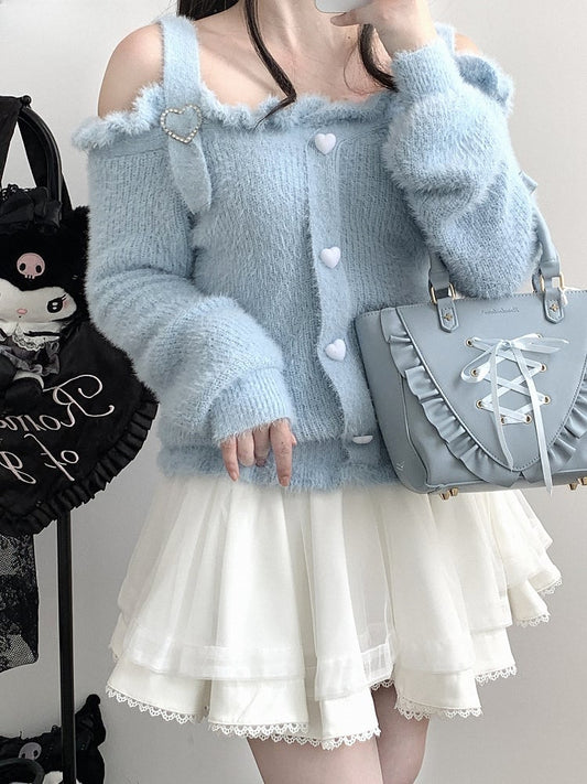 Jirai Kei Blue Off-the-shoulder Neckline Landmine Style Sweater